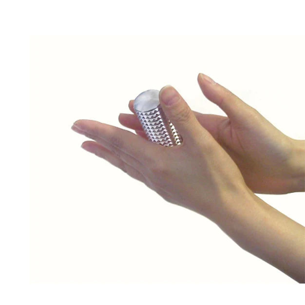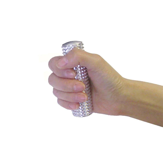 Specially designed light weight aluminum hand roller for Koryo hand therapy. Roller includes hundreds of small pyramid-shaped massage spikes and is 3.7" x 1.1' dia.